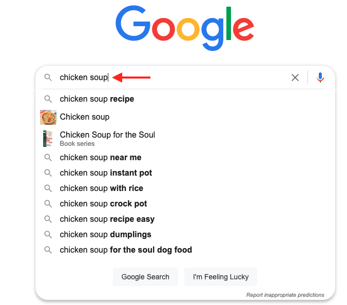 It goes further than simply the words you've typed into the search engine. If you google 'chicken soup', Google will decide you want to look up a recipe. It won't just tell you what chicken soup is. Google assumes you already know that. Its algorithm has worked out that usually, when people search 'chicken soup', they want to cook it, so it immediately goes straight to the recipe.